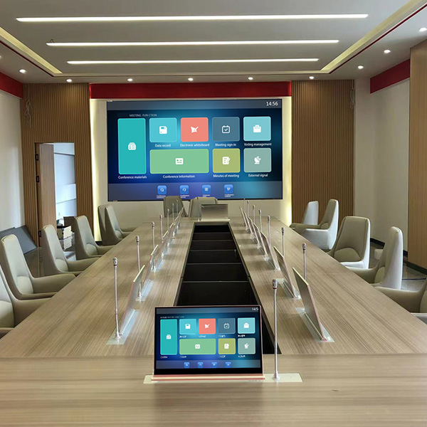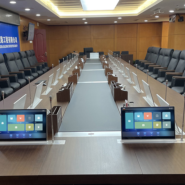 Il sistema supporta la gestione simultanea di più sale riunioni e più conferenze. Attraverso un metodo di interazione visiva della pagina, rende più efficienti le operazioni di prenotazione e configurazione delle conferenze, l'impostazione dei problemi e la preimpostazione della disposizione dei posti, migliorando l'efficienza della creazione e della configurazione di conferenze senza supporto cartaceo, migliorando la capacità di interazione delle informazioni, la gestione dei dati durante la riunione e l'archiviazione dei dati e il backup di sicurezza dopo la riunione. Inoltre, ha funzionalità di gestione delle conferenze. Se utilizzata come sala riunioni normale, non richiede costruzioni ripetute e può essere utilizzata direttamente. Nel sistema per conferenze senza carta, l'unità microfono e l'audio della conferenza del terminale desktop integrato possono essere collegati al terminale per videoconferenza.